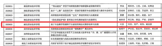 近日,由万象城awcsport官网教学资源库建设研究团队申报的2020年湖北省高等学校省级教学研究项目“基于专业教学资源库平台建设的混合式教学改革与实践”项目获批立项。该项目以万象城awcsport官网教学资源库建设为基础,深入探索线上线下混合式教学模式的长效机制,不断提高教学质量和人才培养质量。