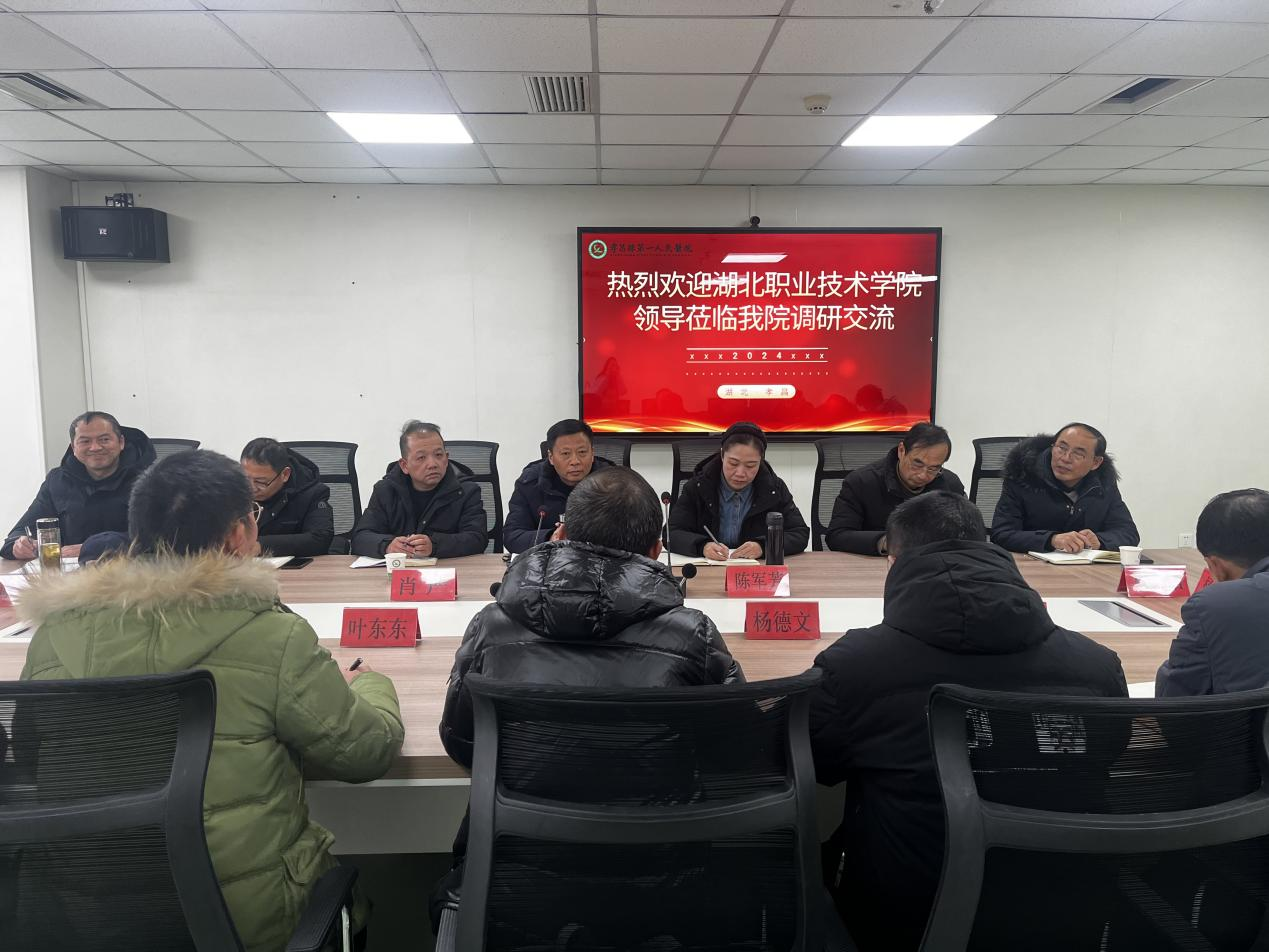 调研团队首先来到了孝昌县第一人民医院。在这里,详细了解了医院的发展历程、现状、未来规划及用人需求。医院相关部门负责人对调研团队的到来表示热烈欢迎,并详细介绍了医院在教学设施建设、实践教学方案优化、人才培养质量提升等方面的经验和做法。双方还就实习学生管理、教学同质化等问题进行了深入的座谈交流。