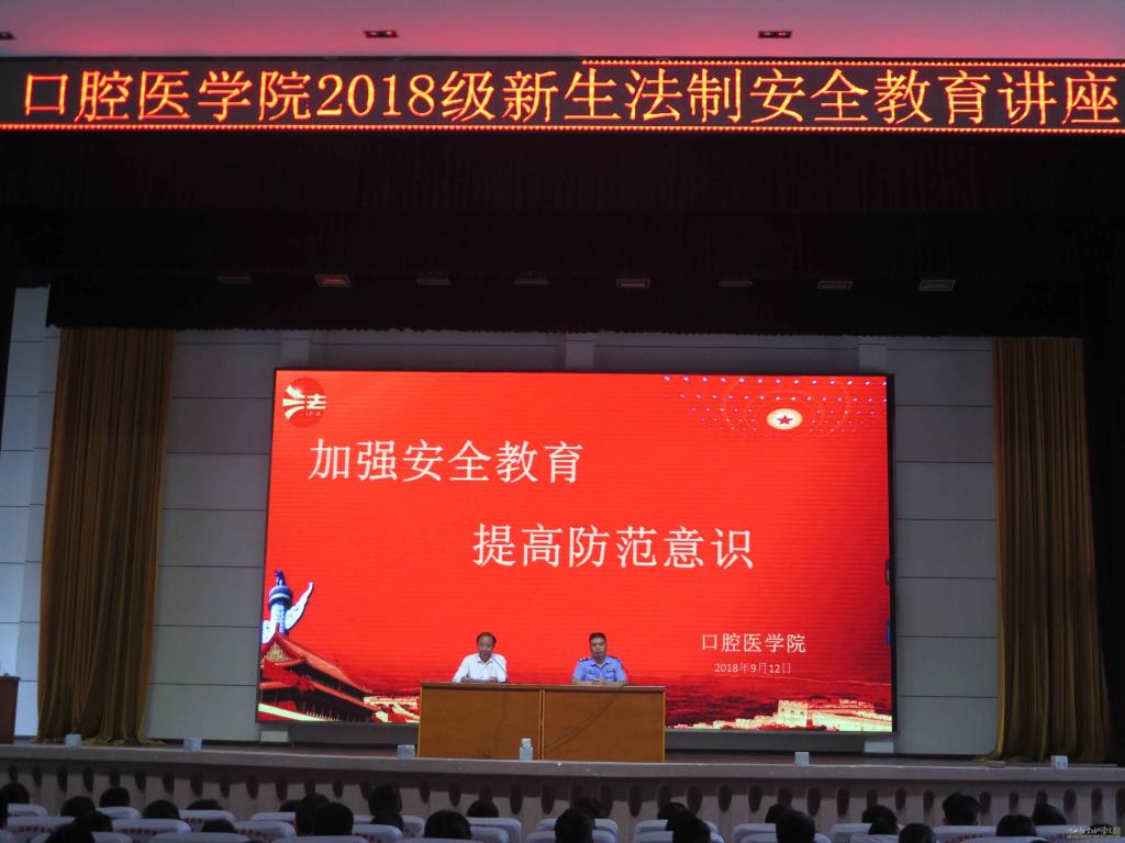 为提高新生的法制观念,树立良好的安全防范意识,9月12日上午,学校保卫处法制科科长刘中华在西区大礼堂为我院2018级1200余名新生开展法制安全教育专题讲座。讲座由副院长高想清主持。