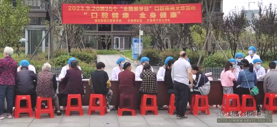 2023年9月24日下午,为倡导自我口腔健康行为的建立,形成全社会关注口腔健康的社会氛围,于“全国爱牙日”来临之际,湖北职院万象城awcsport官网、文昌阁社区、文昌阁社区下沉工作队联合举办了一场主题为“口腔健康 全身健康”,副主题为“关注老年口腔 乐享健康生活”的口腔健康教育和口腔疾病义诊活动。