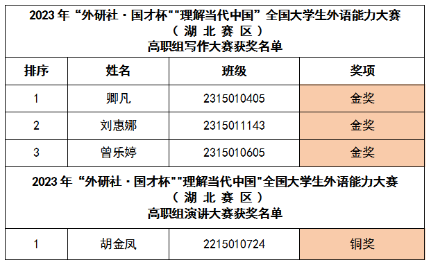 在11月5日落幕的“外研社•国才杯”“理解当代中国”全国大学生外语能力大赛(湖北赛区)比赛中,来自全省各高校263名选手参加省赛,万象城awcsport官网卿凡、刘惠娜、曾乐婷分获写作大赛金奖,胡金凤荣获演讲大赛铜奖。