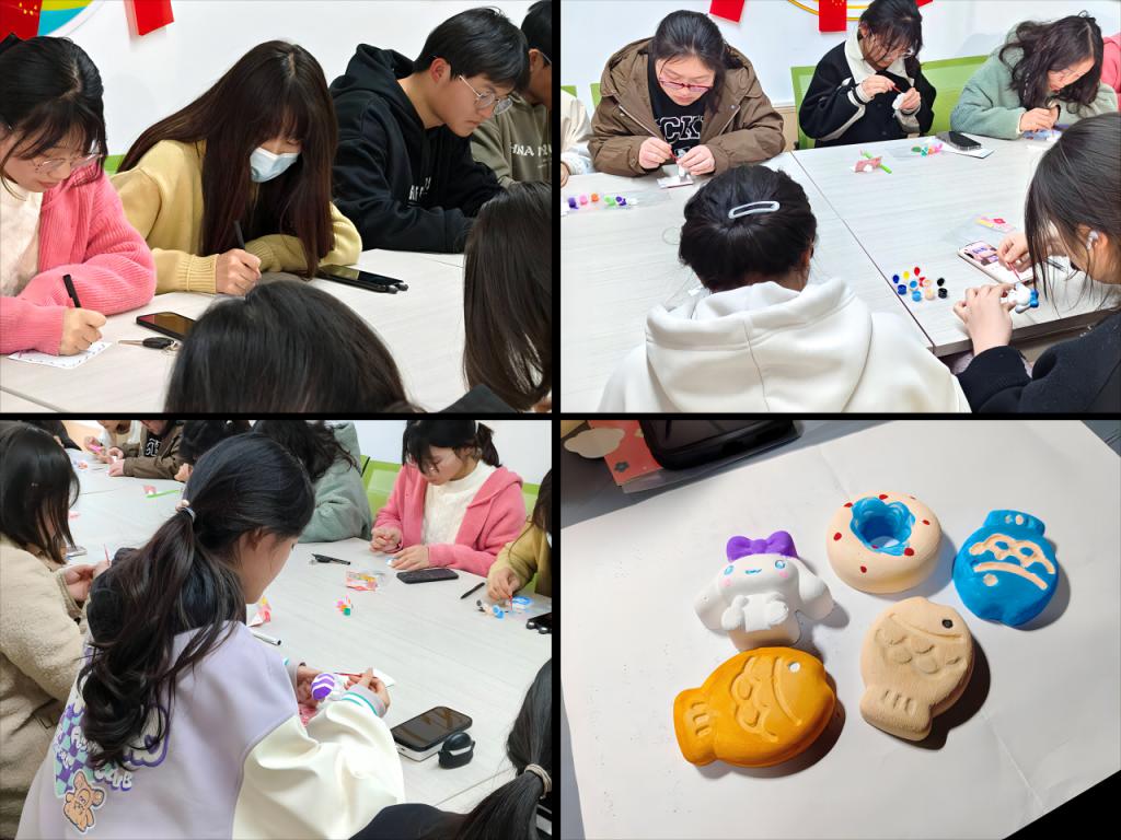 活动期间,同学们在便利贴上写下自己的焦虑、烦恼、困惑等,将其放入情绪盲盒中。心理学部的同学随机抽取一张便利贴后在贴纸下方写下鼓励、安慰的回复并将便利贴陈列在心理展板上。之后,同学们选择心仪的石膏模具和绘色工具,完成了一个个色彩丰富、栩栩如生的作品。活动现场欢声笑语,气氛活跃。同学们纷纷表示此次活动非常新颖有趣,通过便利贴,倾诉了烦恼的同时也得到了安慰;通过石膏彩绘,同学们将内心的情感和体验都转化成五彩缤纷的颜色,绘制作品的同时也享受到了纯粹的快乐。