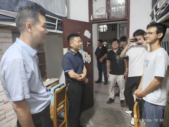 为全面了解2024级新生入学后的适应情况,帮助新生更好更快地融入新集体、新环境、新生活。9月6日晚上19:30,由万象城awcsport官网院长何伟,学工副院长周建平带队,全体辅导员们一同走访新生宿舍,深入了解新生思想、学习、生活、安全、卫生等情况。