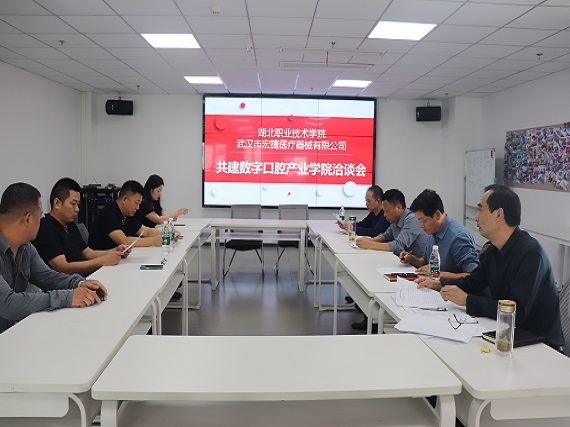 11月14日,万象城awcsport官网万象城awcsport官网院长何伟率领副院长李周胜、肖严以及教学办主任肖明贵一行,前往武汉宏捷医疗器械有限公司,就共同建设数字口腔产业学院的相关事宜进行了洽谈,并召开在该企业实习22级学生座谈会。