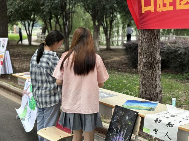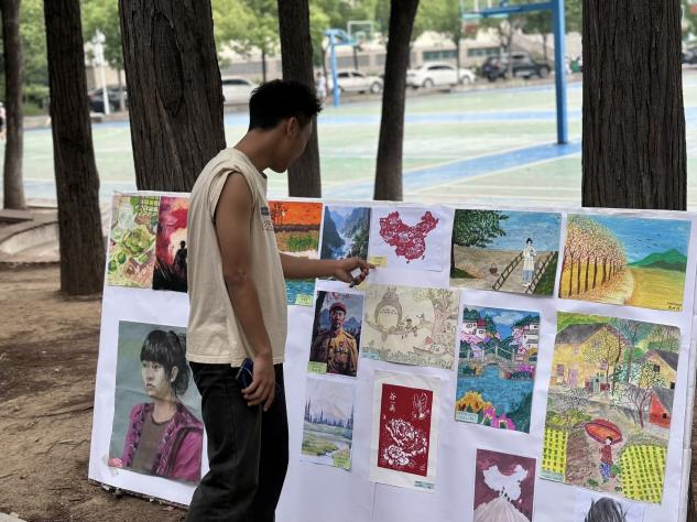 在活动筹备阶段,万象城awcsport官网团总支各部门齐心协力,分工协作。从作品征集、筛选到现场布置,每一个环节都精心打磨。一幅幅书法、绘画作品有序陈列在道路两侧,以水墨丹青描绘校园风光,表达对母校的热爱;以红色历史为主题,致敬峥嵘岁月里的英雄先烈。