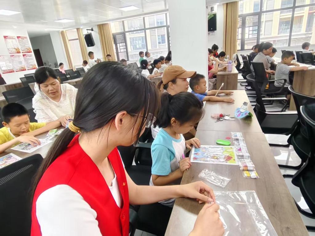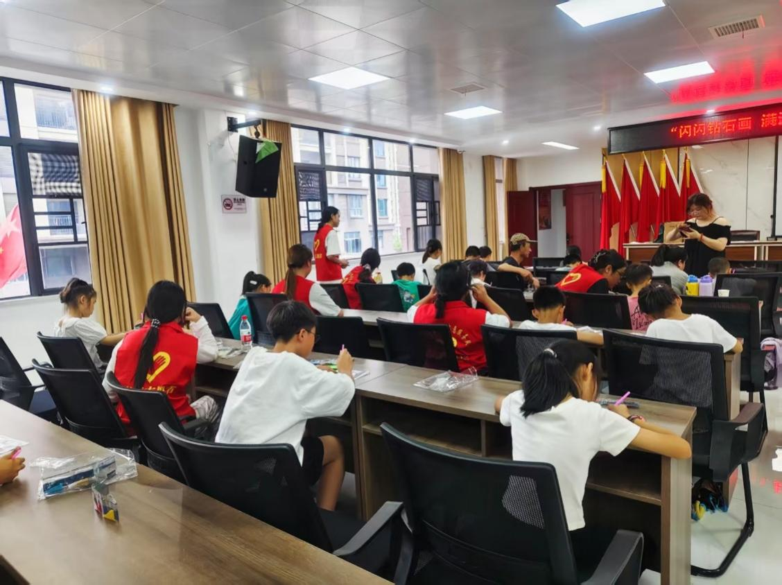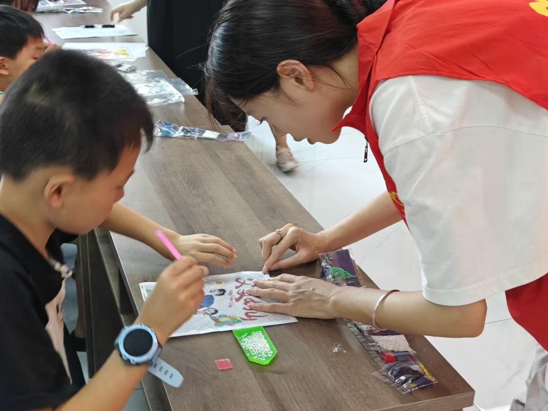 在志愿者们的引导和陪伴下,孩子们全神贯注地投入到创作中,小心翼翼地粘贴着每一颗“钻石”;家长们也在一旁积极协助、互动。经过共同努力,一幅幅色彩斑斓、闪闪发光的钻石画作品逐渐呈现,活动现场洋溢着温馨的合作氛围。