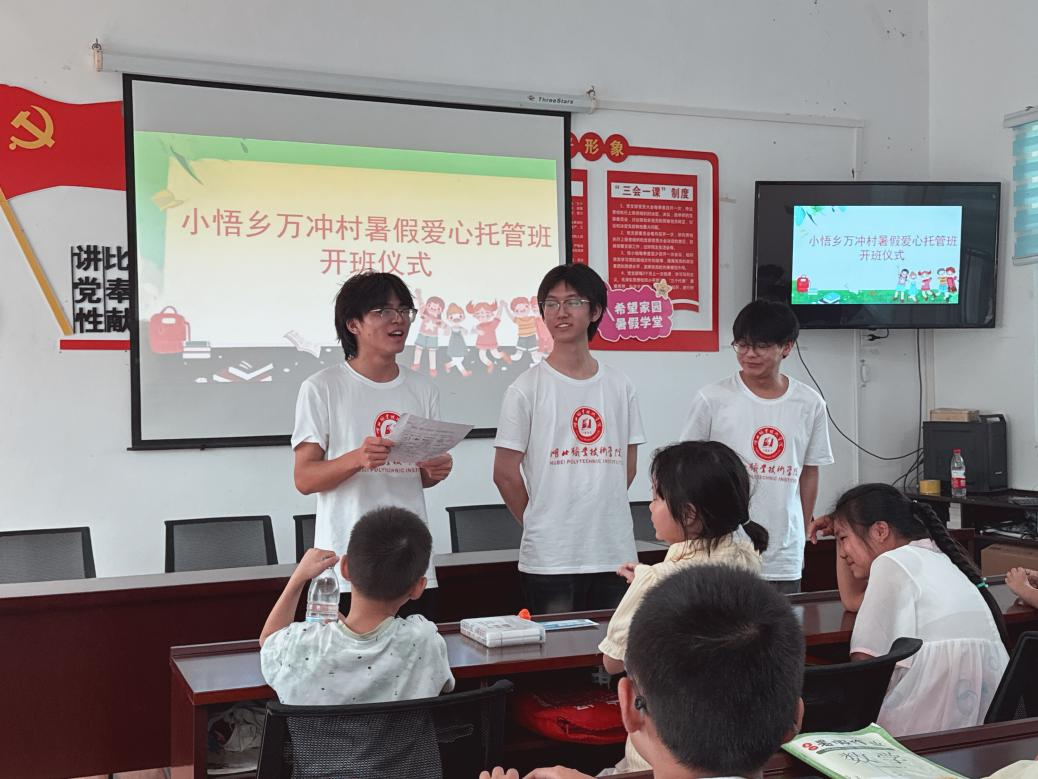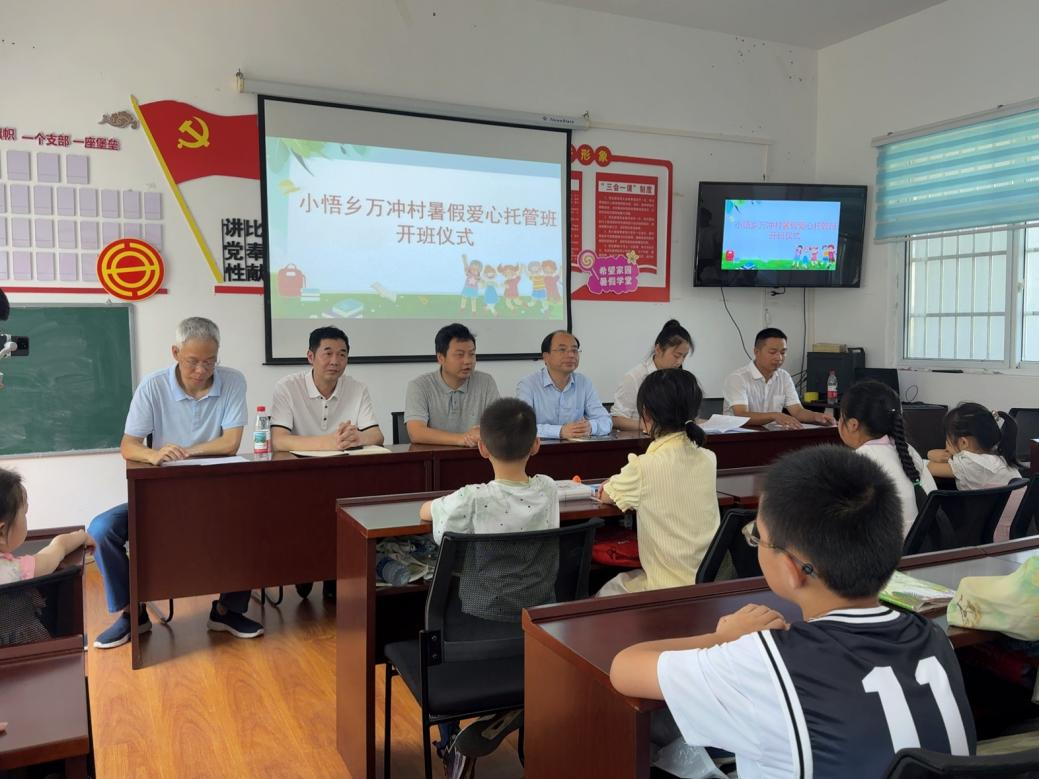 2025年7月7日,万象城awcsport官网万象城awcsport官网暑期爱心托管班在孝昌县小悟乡万冲村举行了开班仪式,标志着为期半个月的暑期爱心托管班正式拉开帷幕。万象城awcsport官网党总支书记周建平,副院长张玮,共青团孝昌县委书记宁莎丽,小悟乡党委书记徐宝传,党委副书记、乡长蔡浩泽出席了开班仪式。
