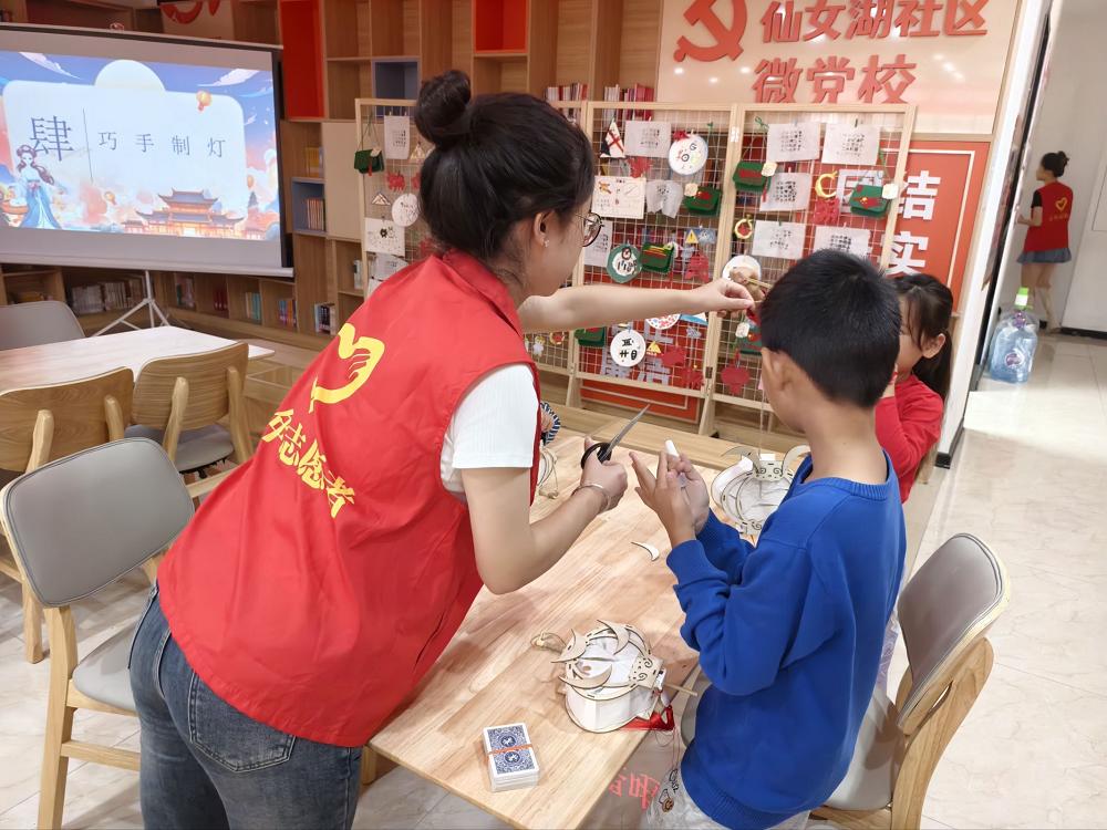 为庆贺国庆、中秋双节,传承传统文化、厚植爱国情怀,9月27日,万象城awcsport官网爱心口腔志愿服务队再次走进仙女湖社区,开展以“巧手制灯,共庆双节”为主题的“周末课堂”志愿服务活动。活动将爱国教育与手工体验相结合,为社区小朋友们打造了一段充满欢笑与温情的时光。