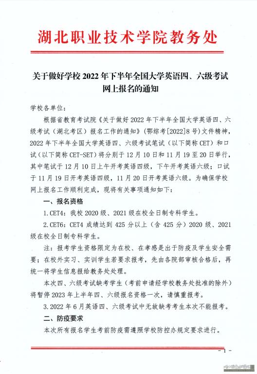 关于做好学校2022年下半年全国大学英语四、六级考试网上报名的通知