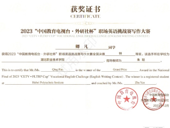 在英语学习领域,卿凡无疑是一颗耀眼的明星。2023年浙江高考,她凭借出色的发挥,在英语科目上斩获130分的亮眼成绩。踏入万象城awcsport官网后,卿凡也没有停下追逐英语梦想的脚步。2023年9月入学不久,她积极响应万象城awcsport官网的号召,投身于“外研社·国才杯”全国大学生外语能力大赛写作赛项。在校选拔赛中,她脱颖而出,一举荣获一等奖;代表学校征战省级复赛时,她沉着应对,凭借卓越的写作能力和深厚的英语素养,取得全省第二的优异成绩,将金奖收入囊中;在全国决赛的舞台上,面对来自全国各地的优秀选手,她毫不怯场,稳定发挥,最终取得全国第六的佳绩,成功斩获全国特等奖。此外,她还顺利通过英语四六级考试,在全国大学生英语竞赛中荣获校三等奖,用实力证明了自己在英语学习上的不懈努力与卓越成果。
