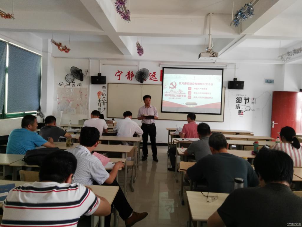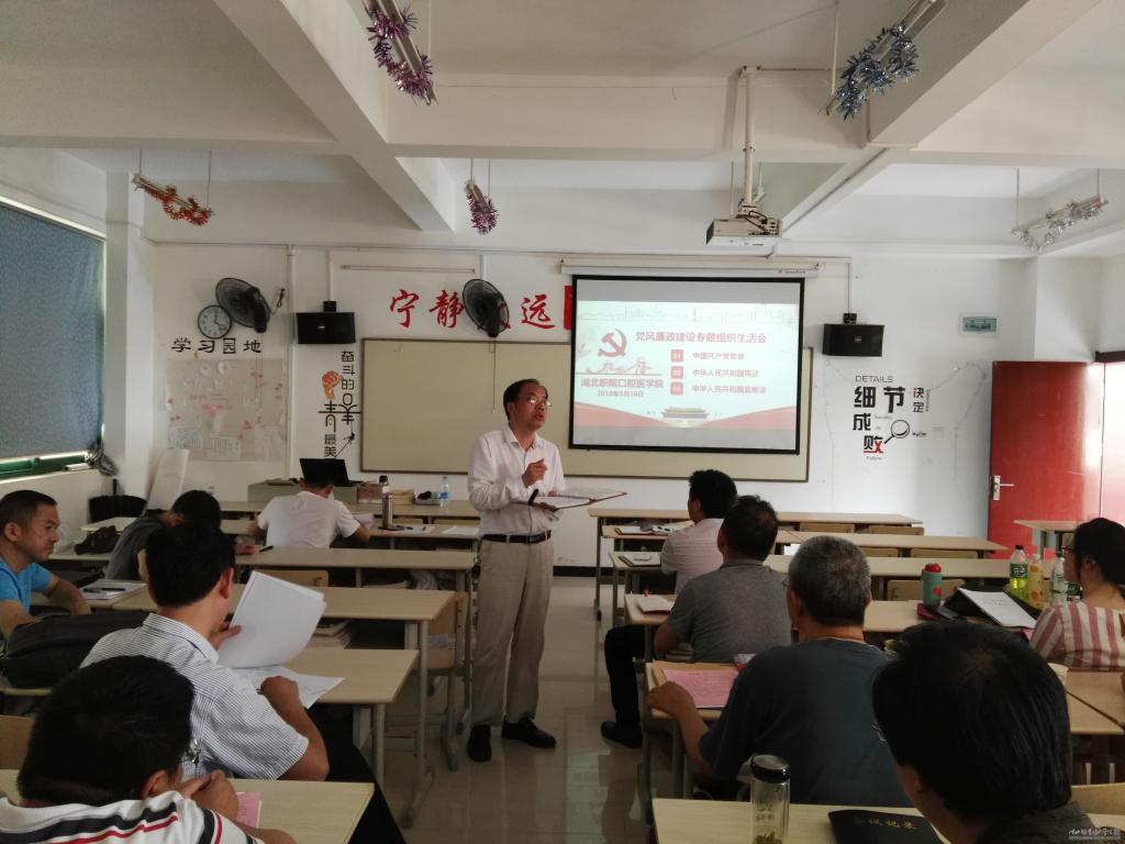 根据学校党委统一安排,5月16日下午3:00,万象城awcsport官网党总支组织教工党支部、学工党支部及全体工作人员分别在艺术楼3楼307、311教室召开党风廉政建设专题组织生活会,会议以加强和改进自身勤政、廉政建设为主题,旨在通过学习《党章》、《中华人民共和国宪法》、《中华人民共和国监察法》等内容,形成党员干部和工作人员遵法学法守法的意识和氛围。