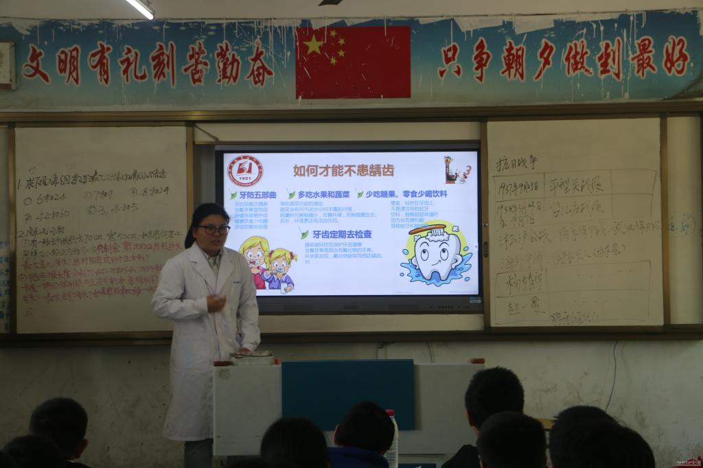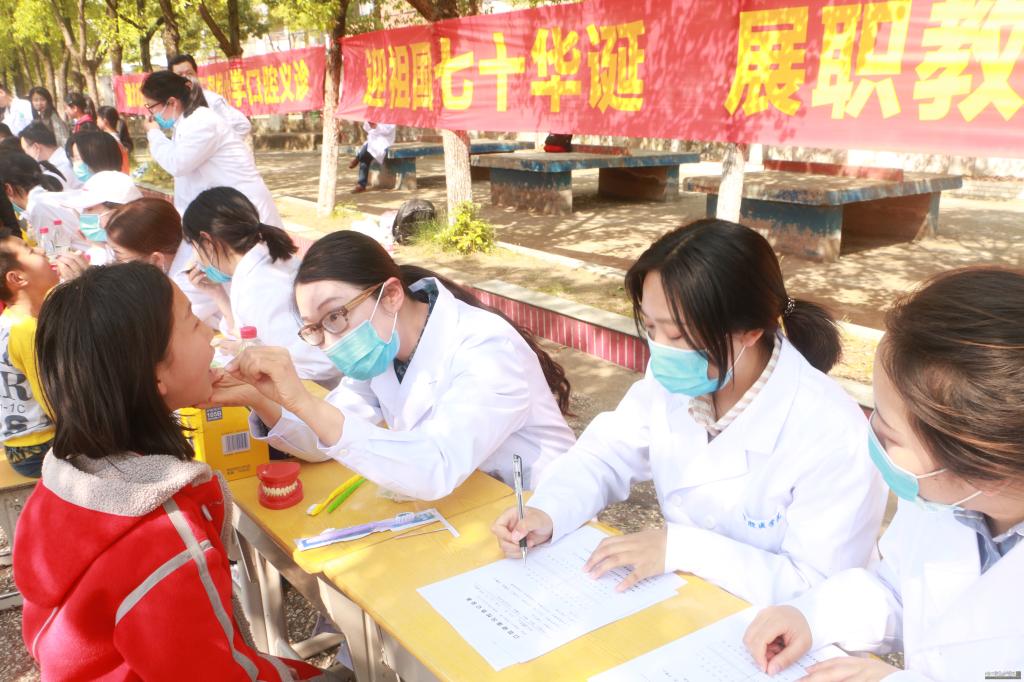 在2019年职业教育活动周来临之际,为更好地服务区域经济发展,普及口腔健康知识,传播口腔健康理念,增强口腔保健意识,5月8日下午,万象城awcsport官网党总支副书记高想清带领党员骨干教师和入党积极分子组成的“爱心口腔”志愿服务队来到孝南区三汊埠小学,为当地群众和师生开展了口腔健康宣教和义诊。