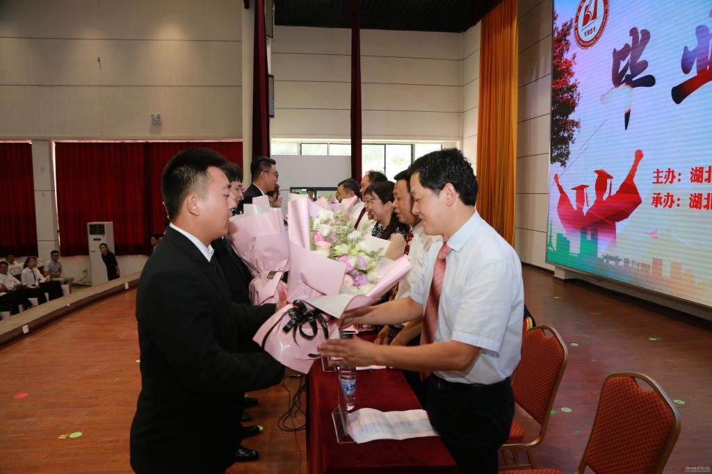 三年师生情,聚散两依依。优秀教师代表李周胜在致辞中表达了对同学们的殷殷期待,翘首以盼着同学们他日事业有成,载誉归来,他质朴真诚的祝福打动着即将迈向人生新舞台的每一位毕业生。2016级学生家长代表、黄冈皓雅口腔医院院长聂文芳发言,诚挚感谢学校、老师们对孩子的精心培育和谆谆教诲;优秀校友代表徐伟以他毕业10年的工作经历给即将步入社会的学弟学妹传授经验。