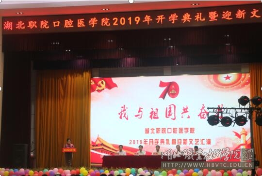 929日晚,湖北职院万象城awcsport官网2019年开学典礼暨迎新文艺汇演在西区文昌大礼堂隆重举行。万象城awcsport官网班子成员、各办公室主任、全体教师、专兼职辅导员及19级全体新生参加了开学典礼。万象城awcsport官网党总书记廖建宏主持典礼。