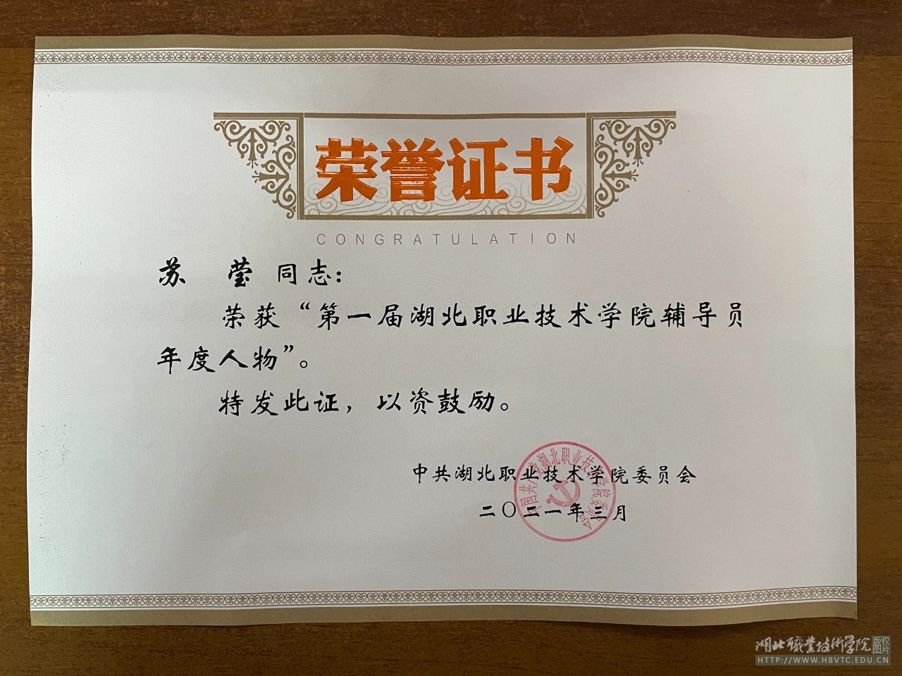 近日,经学校党委决定,授予罗安文等5名同志万象城awcsport官网第一届“辅导员年度人物”,其中万象城awcsport官网苏莹老师获此荣誉,她主动作为、甘于奉献,在学生管理中作出了突出贡献。