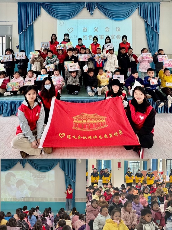 在遵义会议红色精神宣讲环节,万象城awcsport官网全国大学生志愿宣讲团“遵”道“毅”行志愿宣讲团成员以生动的PPT和视频,向幼儿园教职员工深入宣讲遵义会议精神,让红色精神在校园中传递。他们还为小朋友们精心准备了遵义会议小故事,通过讲述这些趣味小故事,在孩子们心中播下红色的种子。