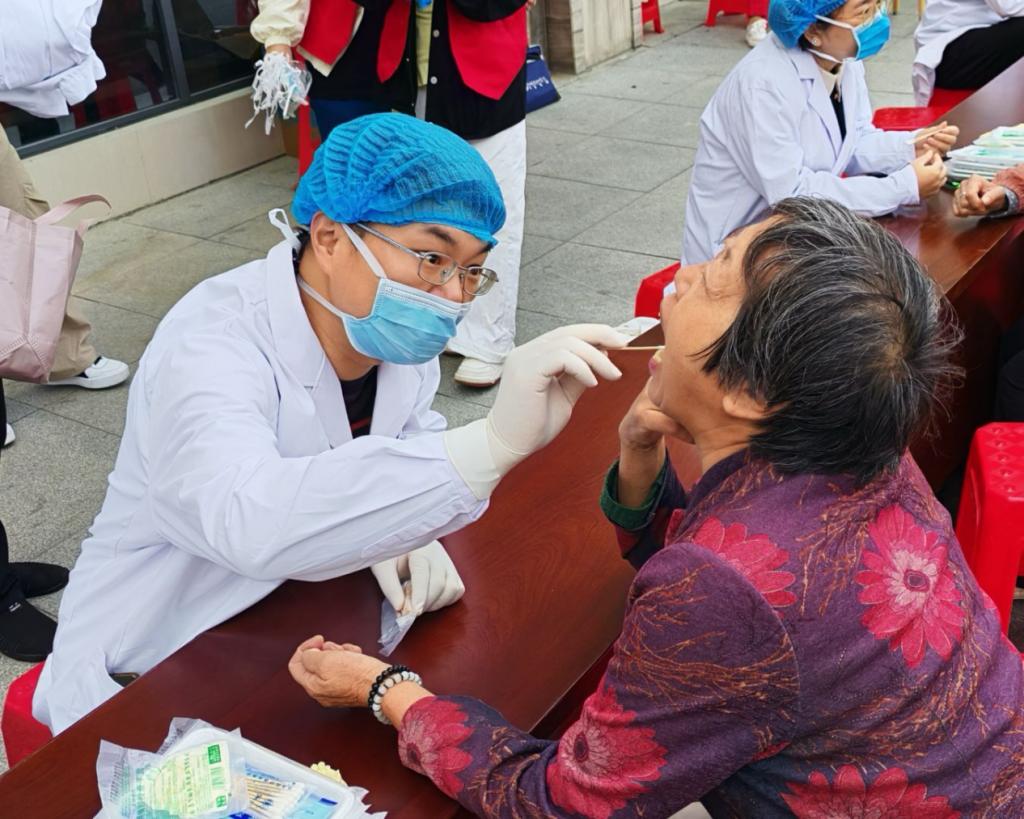 义诊正式启动后,志愿者们迅速进入服务状态,全力配合教师推进诊疗工作。一方面,他们主动引导居民有序排队登记,耐心解答“检查流程”“注意事项”等疑问,同时协助教师记录居民口腔基础信息,让诊疗环节更高效;另一方面,针对行动不便的老年居民,志愿者主动上前帮扶,全程陪同完成口腔检查,及时将教师的专业建议传递给居民,有效缓解了老年居民的就诊焦虑,让服务更有温度。